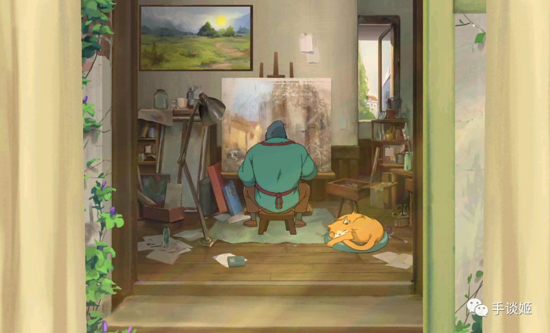 女主家窗口外正对着一名老人,也是画画的,但刚开始给人的感觉是耳朵有点背,反正叫他都不答应。