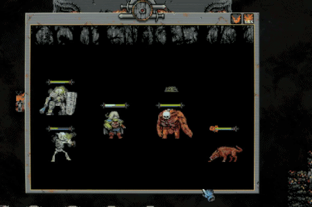 起初,路上出现的敌人很弱,主角与其遭遇便会开始自动战斗。战斗可调节速度,也可随时暂停,每一圈敌人都会变强。