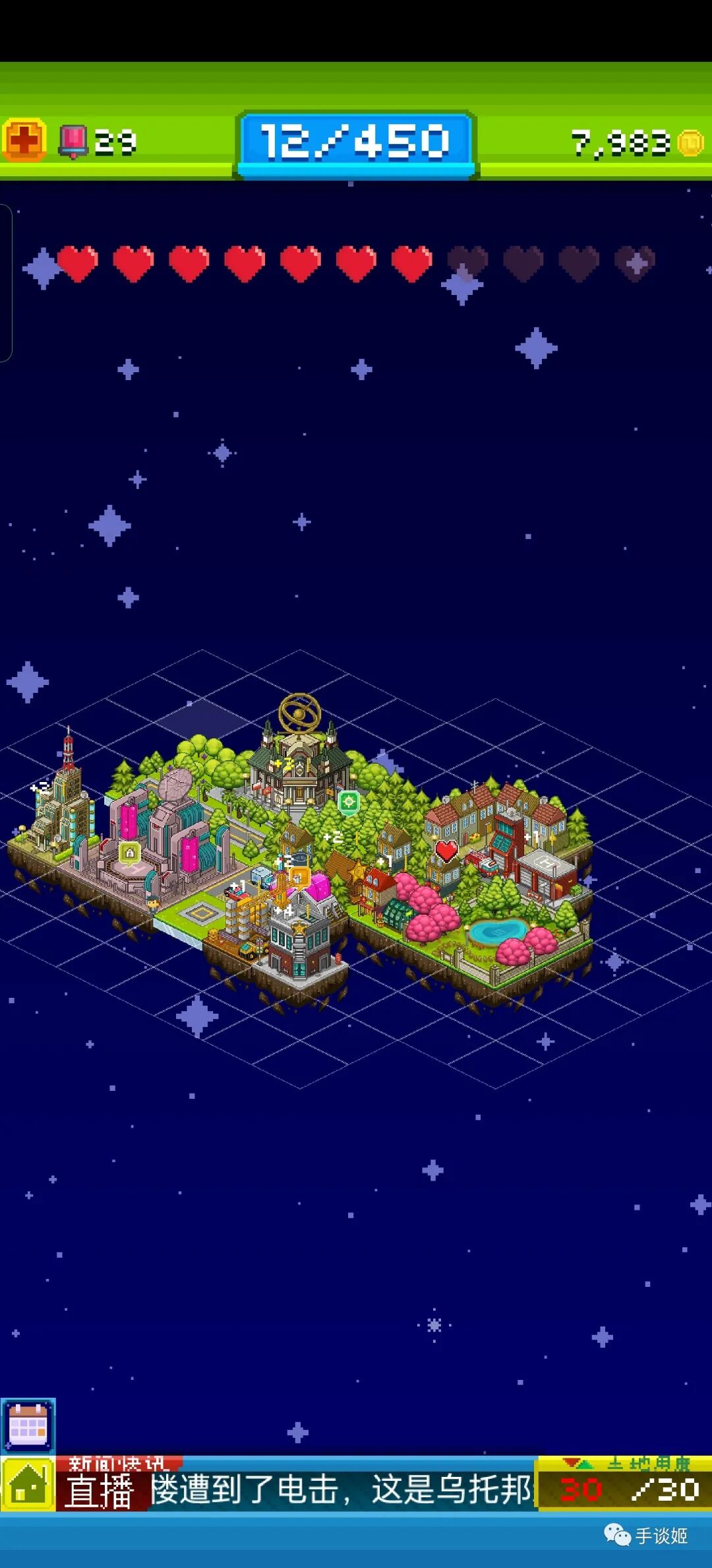 游戏的故事背景很简单,你成为了一个宇宙里的名为无哦拓邦的小镇的镇长,以扩张小镇,吸引居民为主要目标。