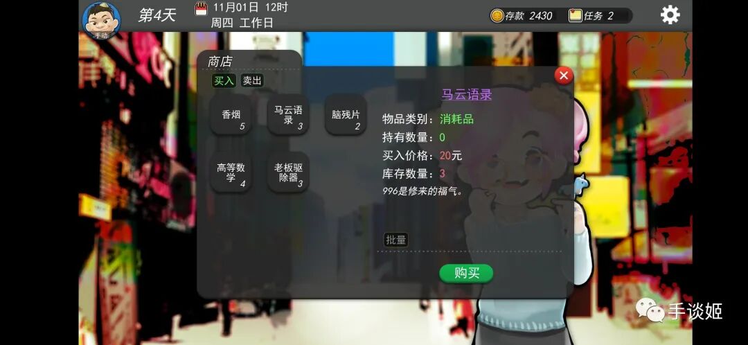 虽然按理来说工作时间为上午9点到下午5点,然而既然游戏标题涵盖着996,你懂的。
