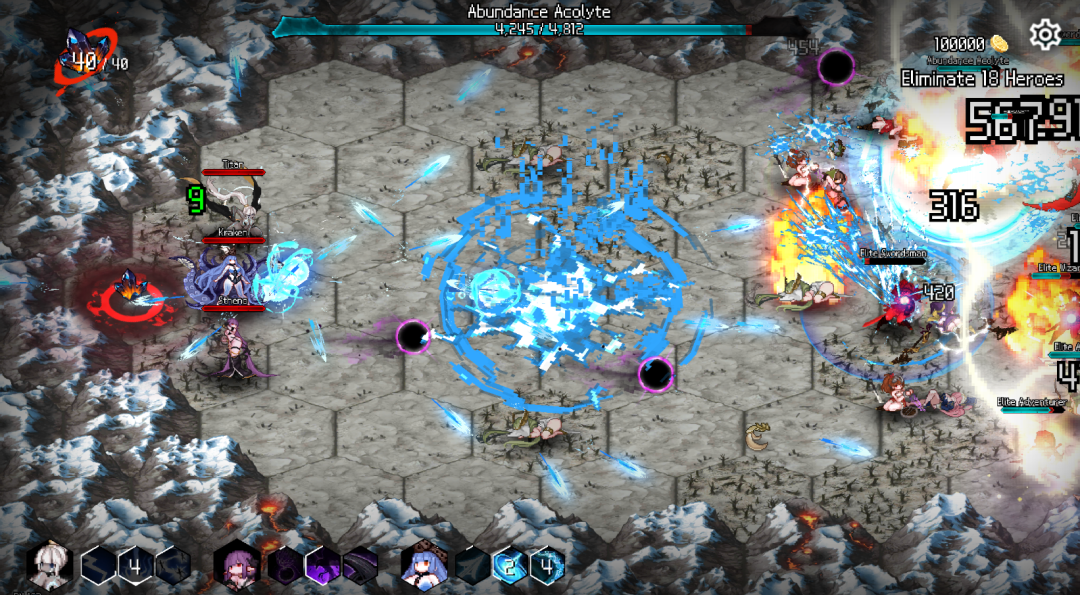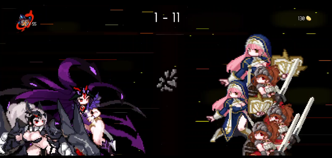 《地牢小队》是横屏的塔防游戏,设定方面,玩家扮演的是守卫地牢的充满诱惑力的恶魔大姐姐,需要通过点击放出弹幕来消灭一波一波向地牢进犯的勇者。这些勇者就有意思了,一个个也是穿着比基尼铠甲或者凸显身材的修道服的样子啊,虽模型上有很多素材复用,有的模型变得大一些,就是个boss了,但是这丝毫不影响游戏的恶趣味性。