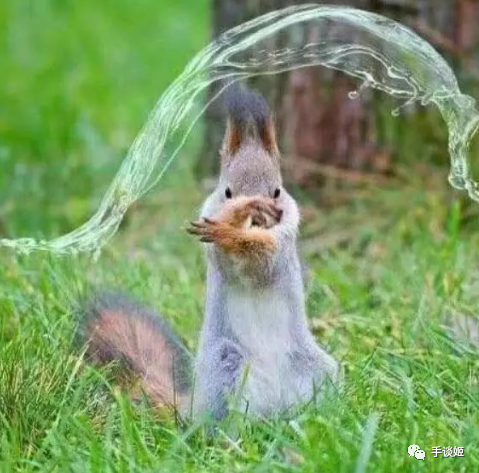 流水飘过瞬间摆出姿势的小松鼠跟操控水流的魔法师一样;