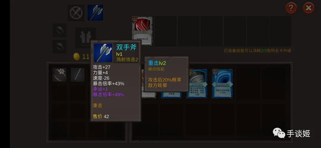 你可以在各种事件之中获取装备,并根据自己的技能选择怎样的装备搭配。