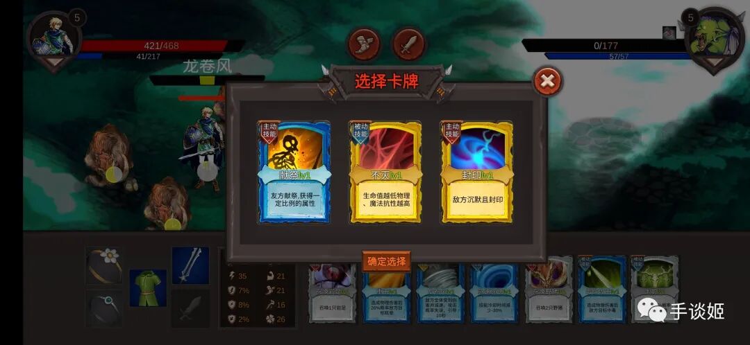 战斗胜利,你可以获得一次卡牌选择的权力,并在地牢旅途之中不断调整卡组。(技能学习后就不能摘下来,得触发某些事件遗忘才可,所以姬友们前期不要一股脑将卡牌全装备了)