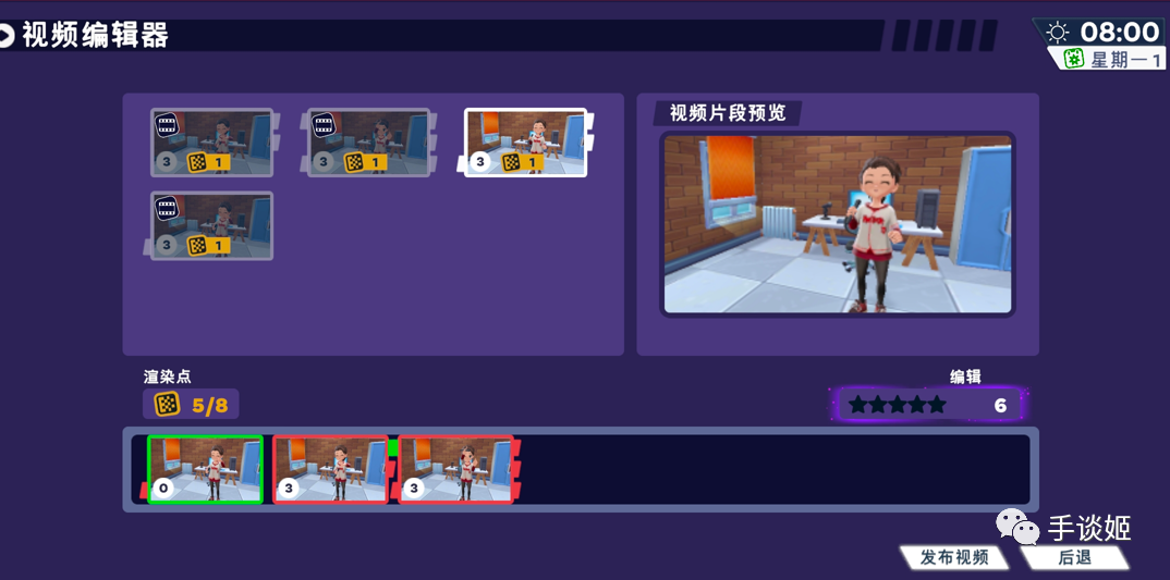 游戏中把“制作视频”做成了一些偶像养成系统常见的玩法,比如一些限时选择机制、以及下图这种考验玩家反应的机制,做得还是挺精细的。