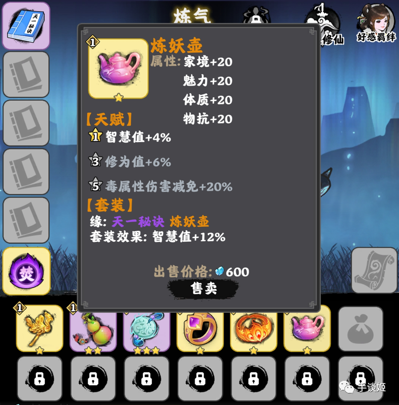 提到宝贝就不得不说一下本作的宝物系统,你既可以在修仙过程中买到装备,也可以主动进入某些秘境夺得心法秘籍,二者相辅相成。