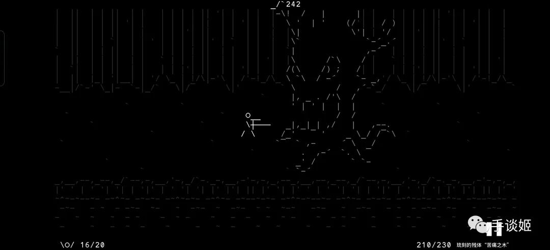 画面是简陋了点,但寥寥数笔的字符构建的世界也不是不能看嘛。接着,你就得在这样的世界里冒险了。