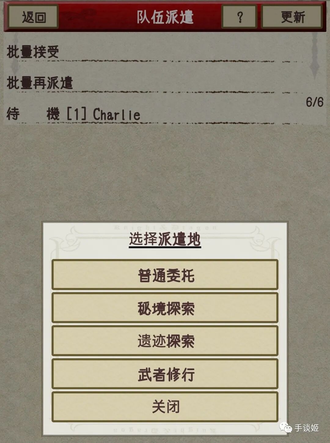 如果你累了不想刷了,还可以将队伍派遣出去,一觉醒来,收个菜,得一堆装备和道具,美滋滋。