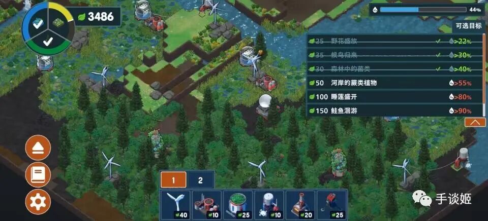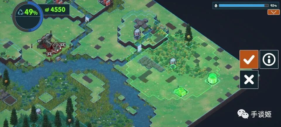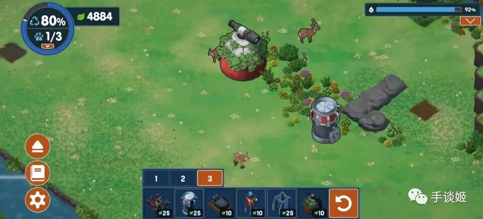 大多数经营游戏都希望你扩大生产,获得更多资金与人员,而本作则以环保为主题,希望你尽可能减少人类对自然的破坏,恢复生态,没有时间限制。