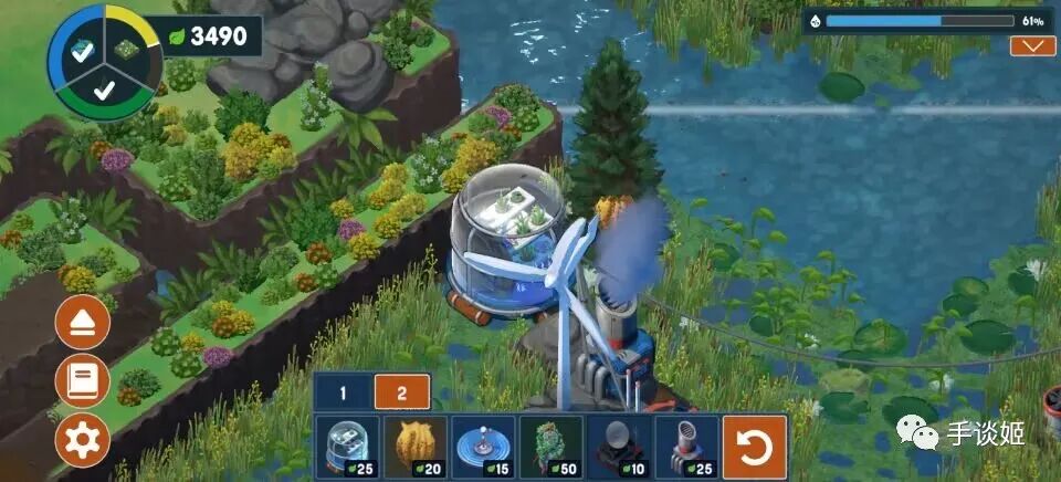 游戏虽然以绿为主,但很治愈,而且细节做得很不错,比如在树上放上蜂巢后,蜜蜂在林间飞舞,湿度达到特定指数后,鲑鱼从下流洄游。