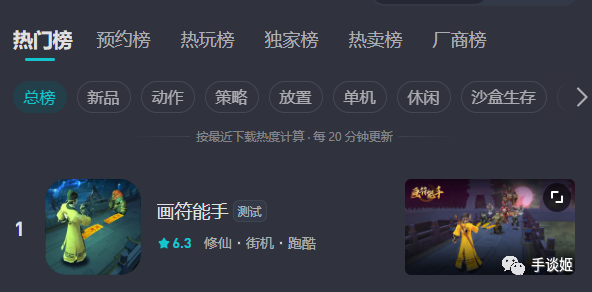 不过今天手谈姬四处物色游戏的时候发现,taptap热门榜第一居然就是这类手游!游戏名叫《画符能手》。