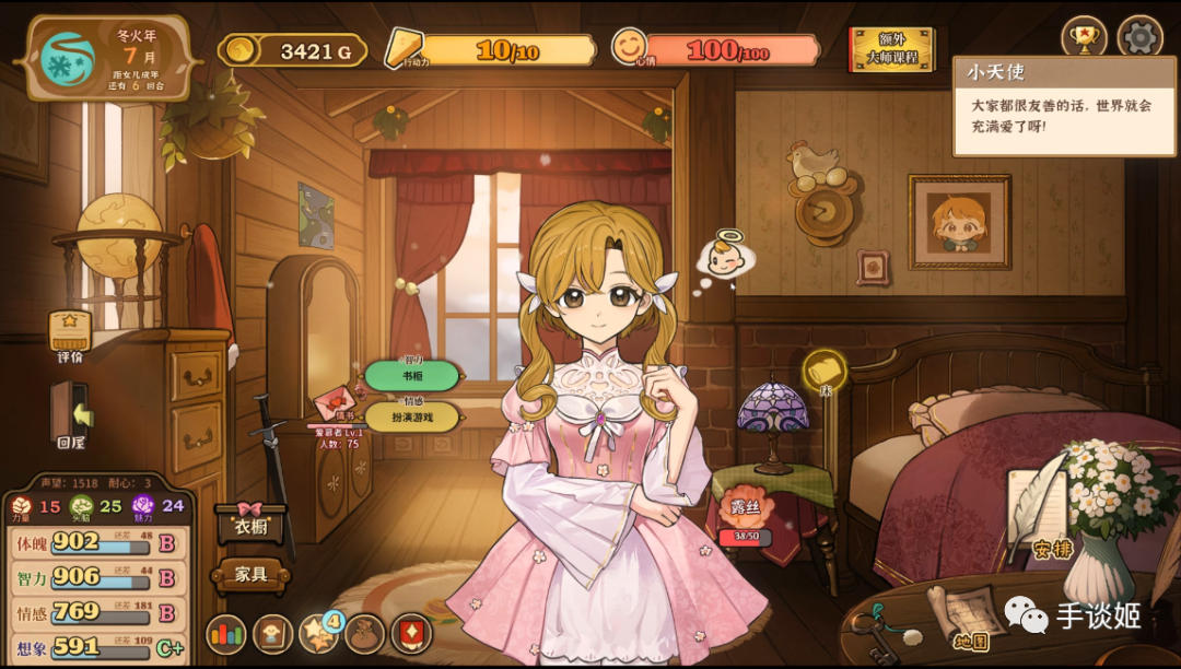 毕竟!这游戏是昨天发售的,手谈姬也只是玩了一遍一周目,相当一部分回合选择了摆烂,得了个平民结局,还熬夜玩到挺晚,得了双黑眼圈。