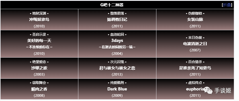 所以十二神器以及后来的十二魔器,经常被人拿来坑新人,就如同2011年-2012年那段时间,如果一个人问某个女孩子出自哪个galgame时,坏心眼的网友会回答《女装山脉》一样,骗他去打开那道禁忌之门,献出灵魂。