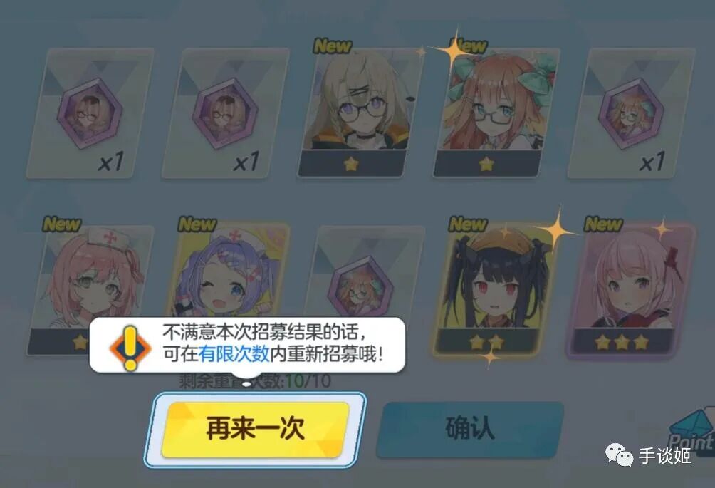 抽卡方面,作为一个刚开、服但有外服千里眼的抽卡游戏,“人权卡”显得特别重要,这款游戏的海外服可以刷初始,但国服现在很多游戏都因为需要绑定通行证而很难刷初始了,删档测试的《蔚蓝档案》提供的方案是“第一发十连有十次重抽机会”这样的选项,也不是什么新机制了。