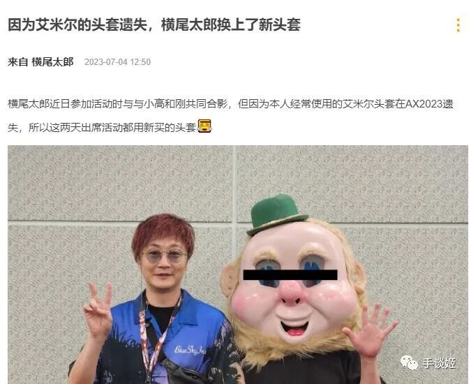 横尾太郎常带的头套让别人给薅走了。