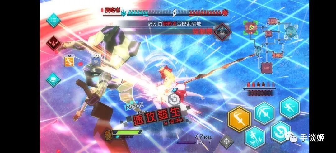 右上角地图会显示作战情况,红色的代表你的阵营被压制,蓝色则代表你压制别人。