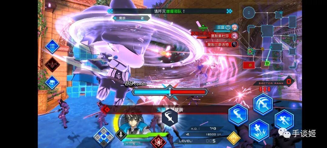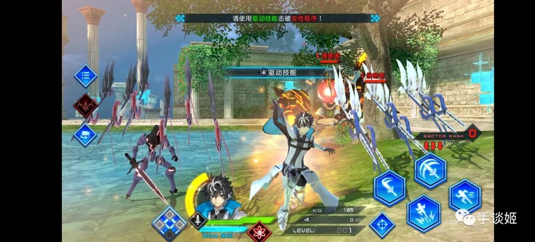 扫荡也很简单,轻攻击+重攻击,滑动地图切换视角,能量满了发动月灵驱动提升攻击力和防御力,宝具槽满了发动宝具。这作有了锁定按钮,同时点击镜头切换按钮还附带格挡动作。