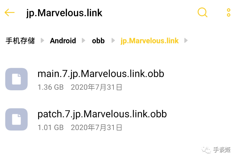 放成手谈姬给的截图这样就对了,Android/obb文件夹下放入jp.Marvelous.link文件夹,再在jp.Marvelous.link文件夹下放入两个obb文件。