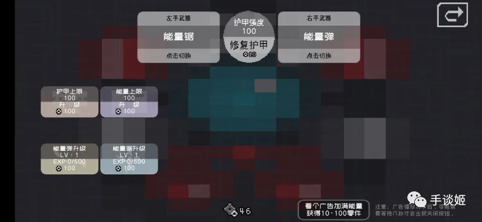 你的机甲可同时使用两种武器,根据敌人的情况适当切换。近战多的时候可换电锯,远程多的时候能切能量枪。