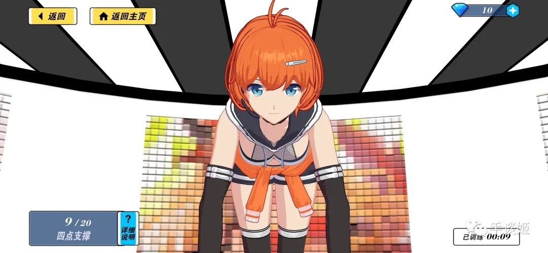参照少女的姿势,模仿的同时聆听倒数,疲劳感的累积速度好像会减慢一些?