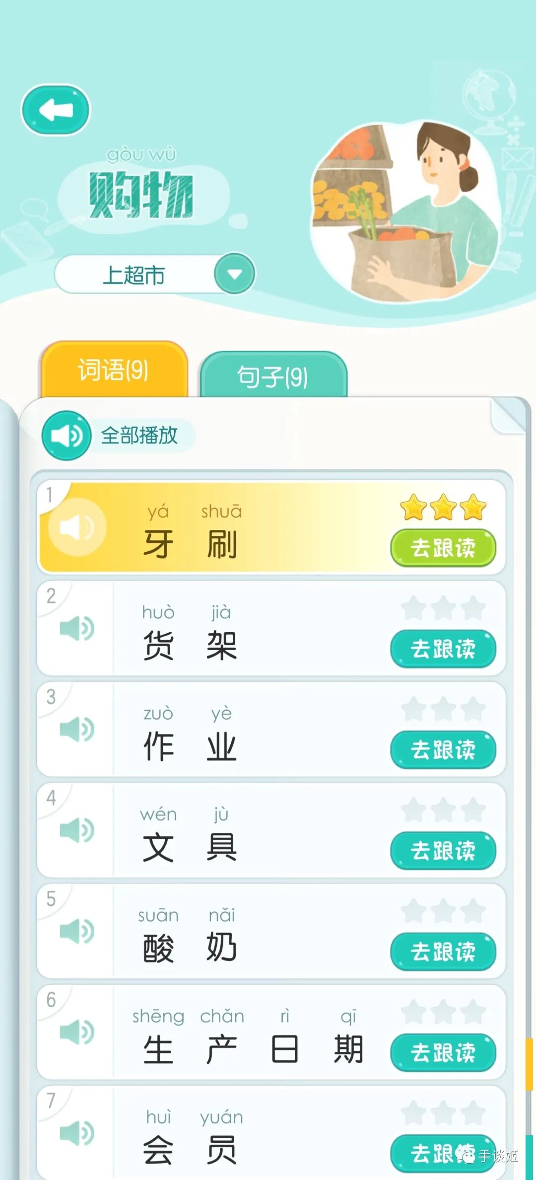 除了随机触发的考题外,游戏还提供了大量日常普通话词汇和语句方便玩家练习。包括购物、看病、出行、娱乐、过节等等。