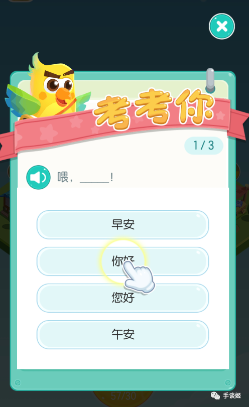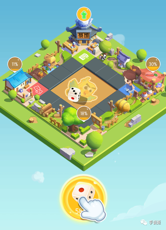 至于游戏玩法,非常简单。你控制主人公在一个沙盘上投掷骰子,走一步就能获得一定金币,金币可提升村里的建筑等级。若踩到了特殊格子,便会触发普通话相关的考题。