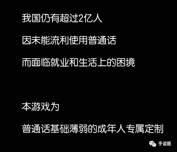 本作开篇就强调,我国有超过2亿人未能流利使用普通话,造成就业和生活上的一些问题,因此本作专为普通话薄弱的成年人定制。