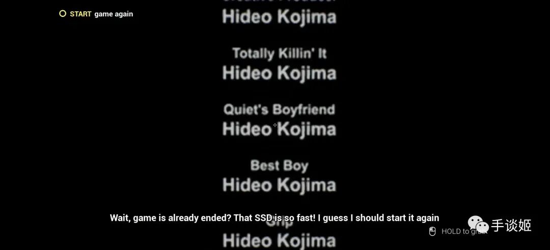 顺带一提,游戏结尾的所有工作人员名单全是小岛秀夫(Hideo Kojima)。