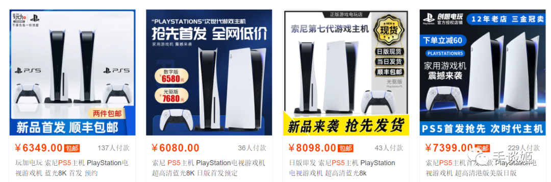 而且PS5溢价惊人,姬查看了下,某宝现货价格光盘版基本8000左右,数字版7500。要知道原价才499美元(3300人民币)和399美元(2600人民币),这都超出一倍以上了。