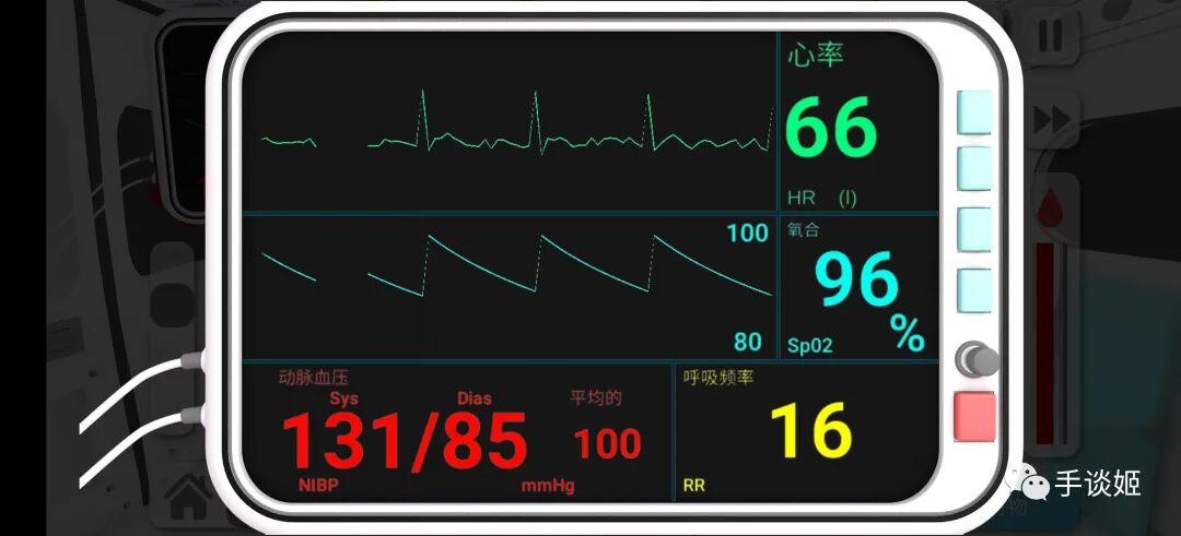 其二则是看心电图。包含心跳,氧气,血压,呼吸等等。这些在教程里会提及,什么心房颤动、窦性心律、室性心动过速都有。