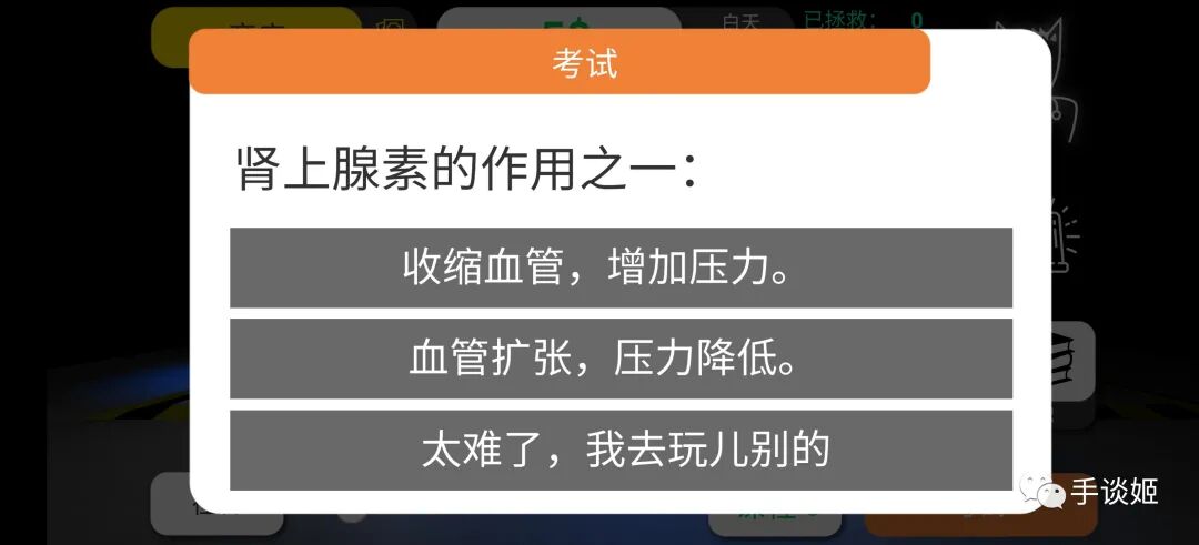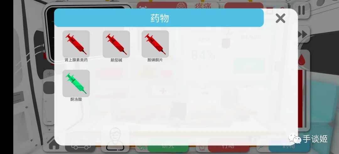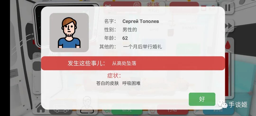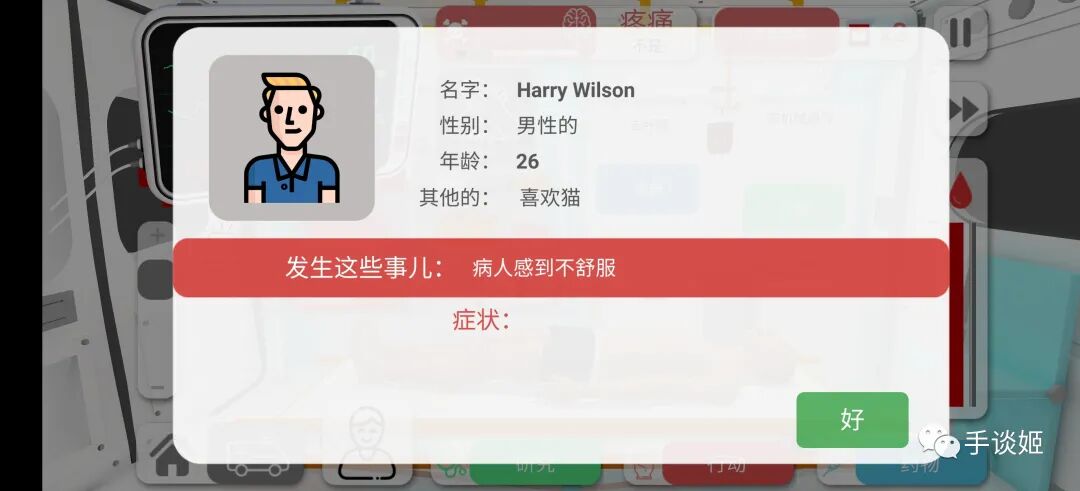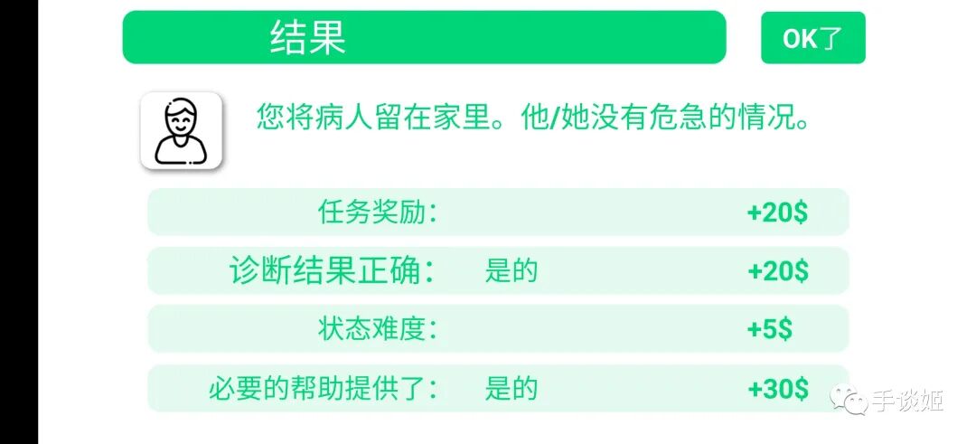 当病人被治愈或送至医院后,游戏会询问你病情,如果你诊断正确,则能获得更多奖励。(好难,姬经常搞不懂心房颤动和心室颤动有啥区别)