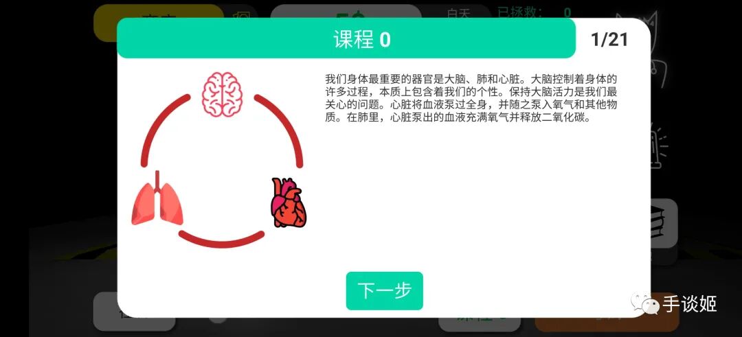 在开始救人之前,游戏提供了超长教程。包括基本知识的科普,以及相关病情的介绍。