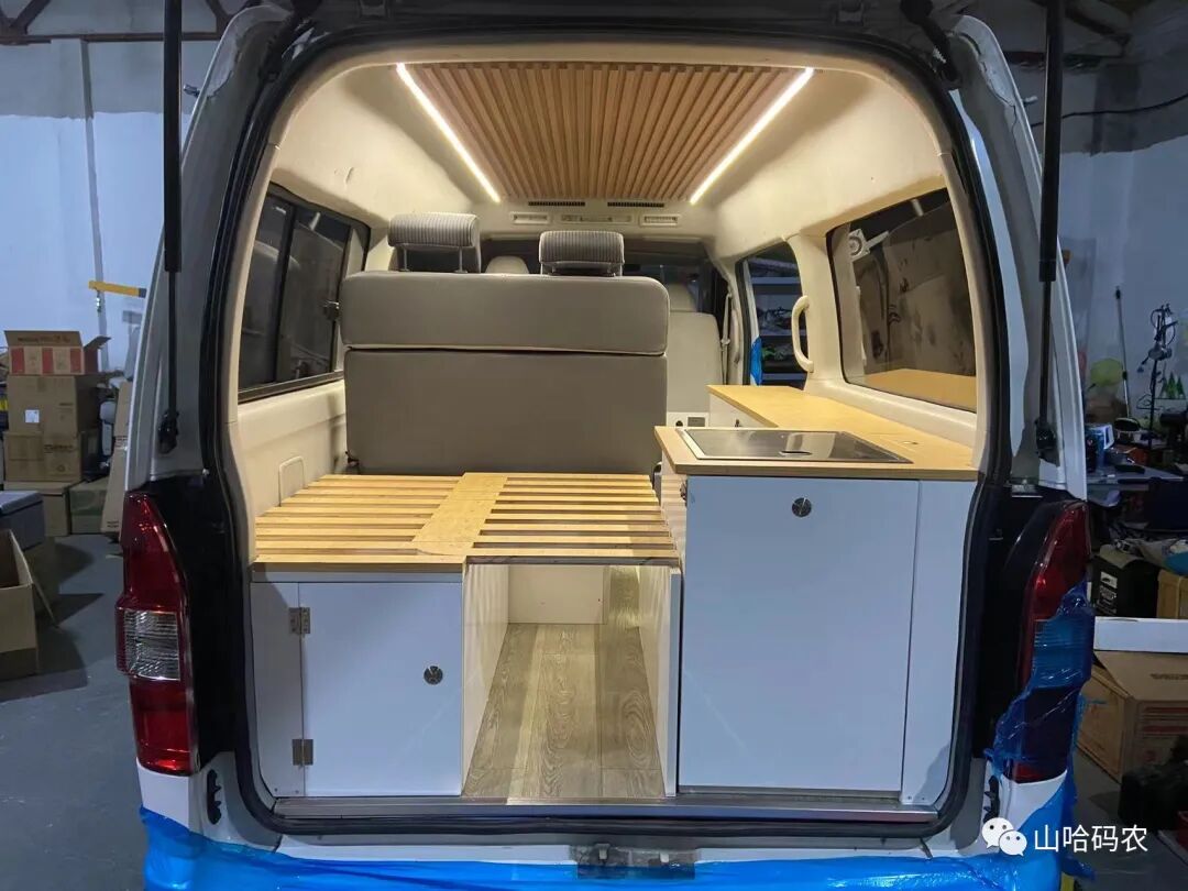 整体改装后的一个效果,仅供大家欣赏,顶部的话做了一个储物挂板。