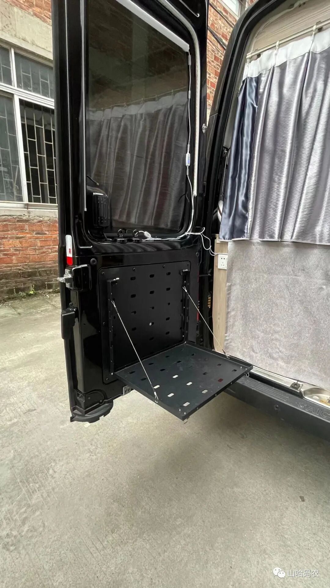 关于床车尾门这里的话,基本上一般情况下大家在这里做操作台的场景是比较多的,通常用来储物的话还是比较少。