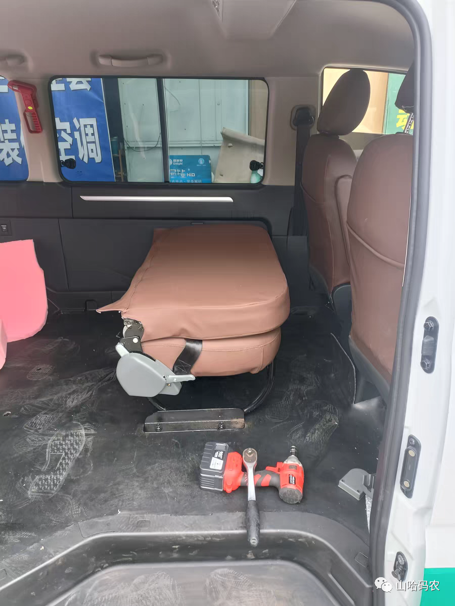 比如像这个座椅改装,你就可以搜面包车座椅,转角放平。等等的相关配件,这样就可以得到像下面图片类似于这样的相关案例,这对你的改装是极其有所帮助的,像现在的船车或者房车所谓的专用座椅动不动,则在1800到2000元左右,而且体验是极差的,包括安装孔位之类的,要重新定位。算下来的话成本是极其高昂的,我在群里面分享过很多改装案例,很多车友反馈下来,像这个床车座椅的话,就是看起来能用,实际上体验是极差的,安全性我们就不讨论了。