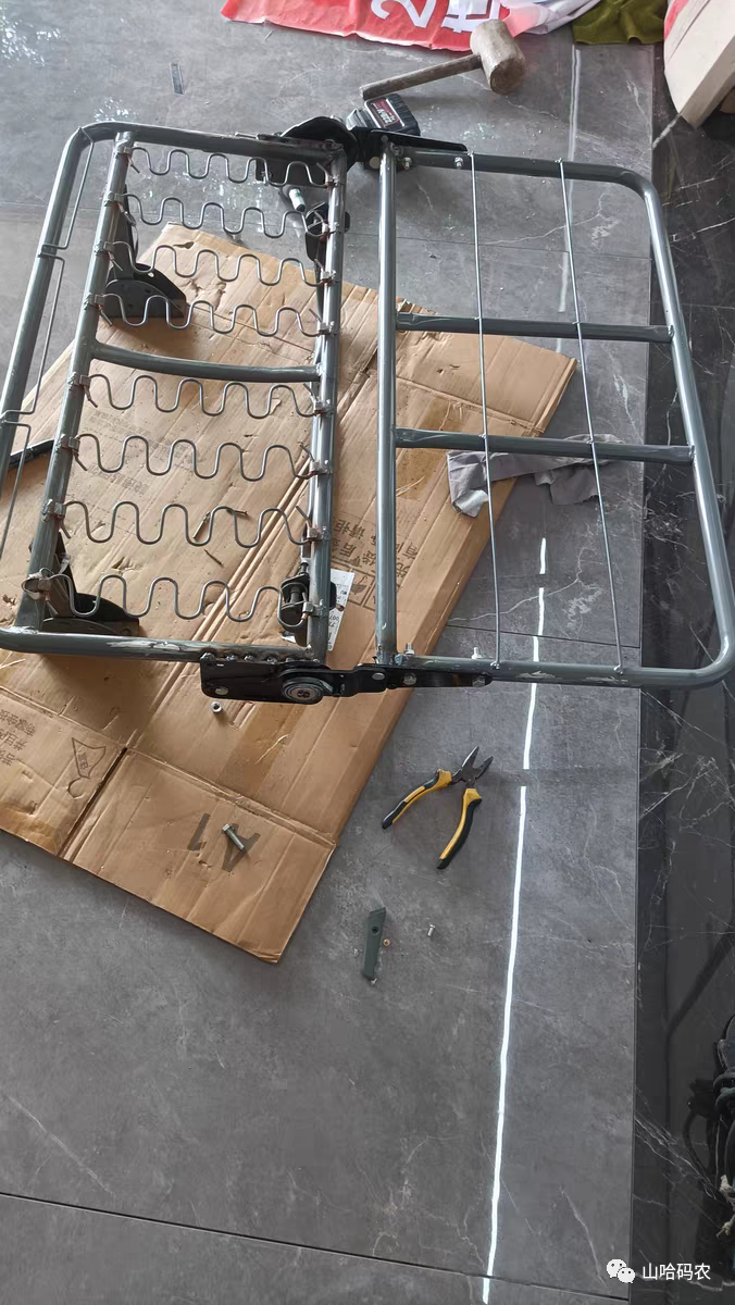 如图中所发的一些案例的话,基本上就会用到一些像焊接之类的设备,那么这个在路边摊一般都是可以找到的,通常会焊接的话都会有这样的定位技术的,相对来说施工起来是比较简单的内衬,这一块的话你自己把它扒拉下来就可以解决这个问题。 原车座椅的改装好处就在于避免二次打孔和重新定位,从而实现放平可以改为一个床。