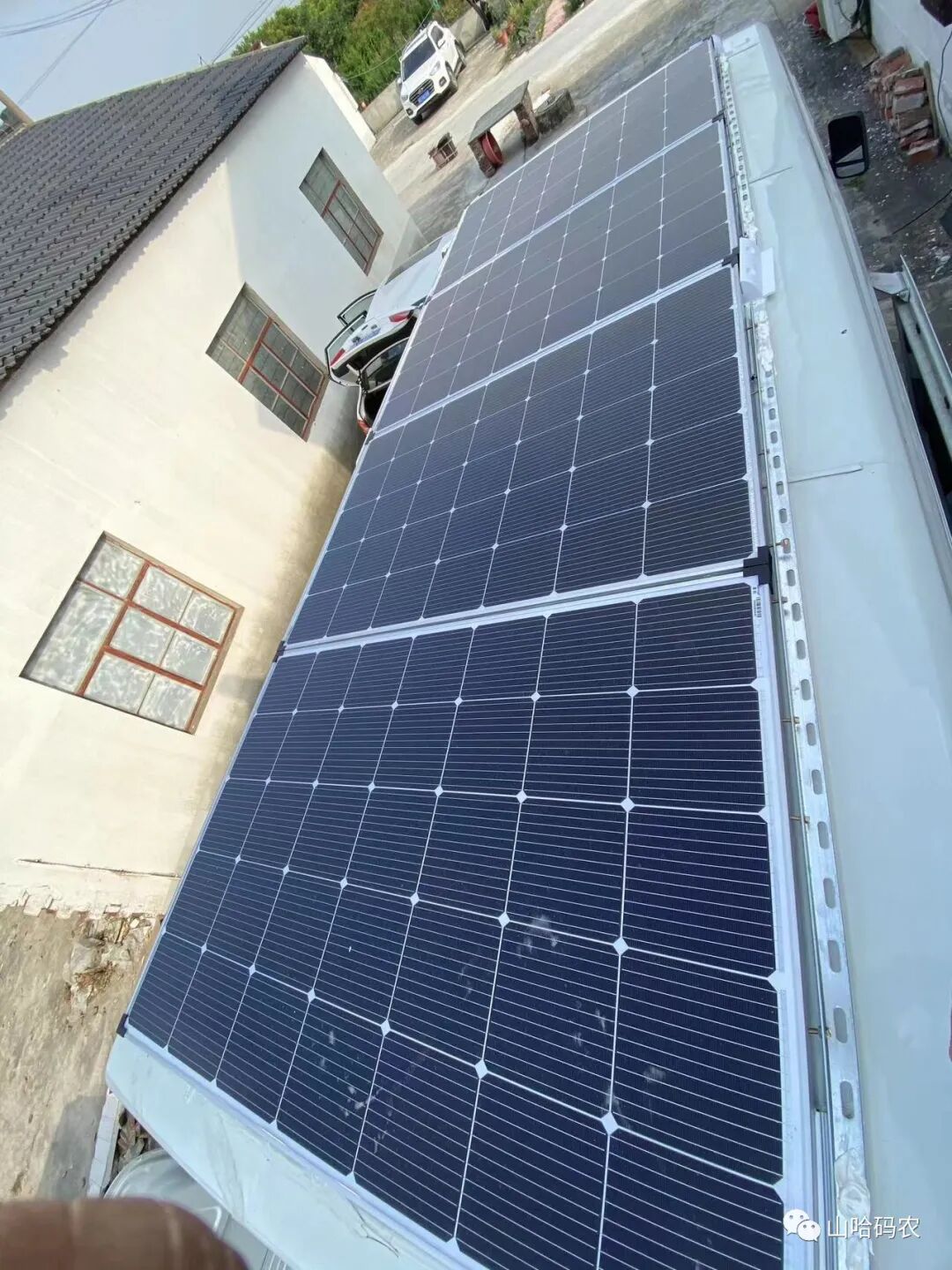 整个车顶全部铺满了太阳能板。
