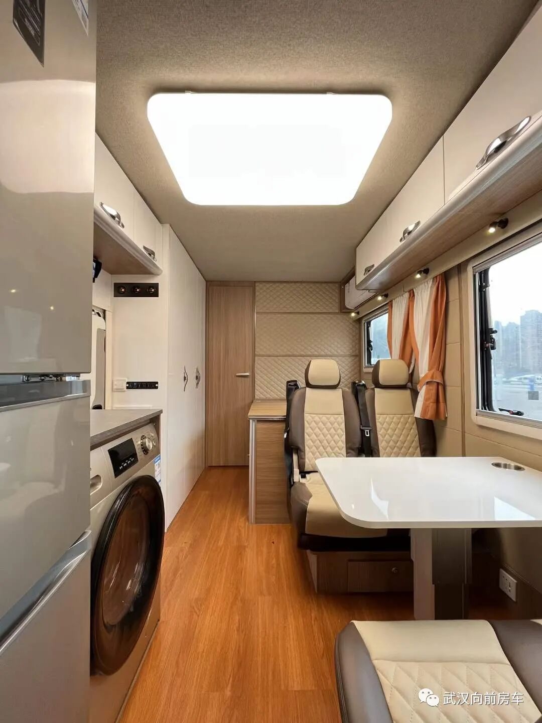 最新到店一辆全新未上牌上汽跃进H300轻卡房车一辆,该车车身尺寸为5990*2305*3180。配备有最新2.0T上汽π柴油发动机,国六排放标准,旋钮自动挡变速箱,四路监控系统,后驱后双胎,大水大电的典范车型,提车即可直接开启旅居生活!此车为48V150AH锂电池,超大功率太阳能板,车内有小米家用智能电视,美的家用4开门大冰箱,海信家用10KG滚筒洗衣机,科龙家用变频分体空调,3开门大衣柜和一排储物吊柜,额头大床,带拓展大纵床,对卡座也可拼床。独立后厨卫配备有格兰仕微波炉,抽油烟机,电磁炉,洗手洗菜池,超多储物空间。卫生间有旋转抽拉式马桶,独立淋浴系统,超劲换气扇等,绝对有家的感觉!喜欢的车友赶紧联系定车了,好车不等人哦!