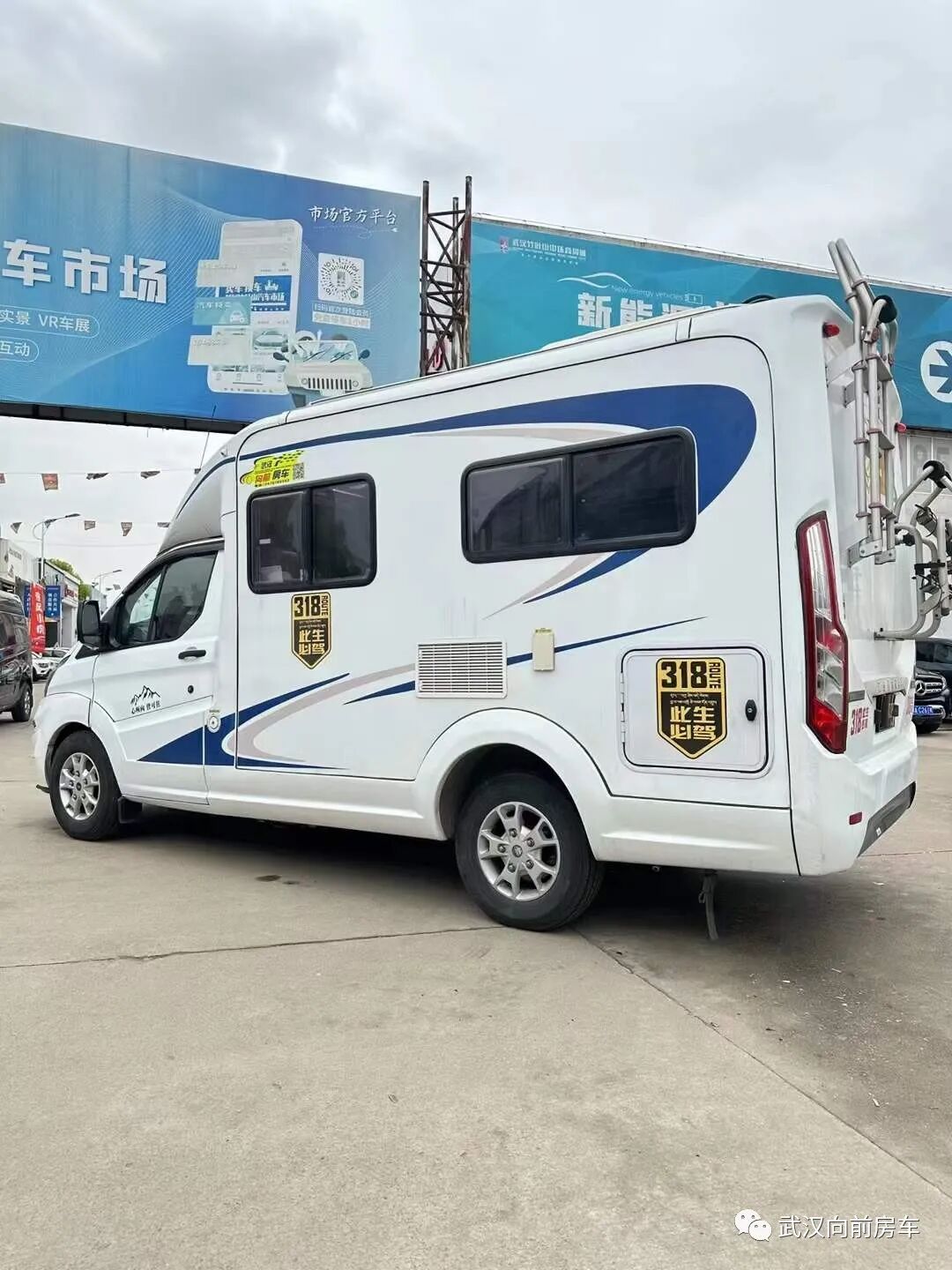 新到一辆2019年5月上牌的江铃原厂福特小顶玉麒麟房车,整车尺寸:5995*2260*2940mm。搭载2.0T汽油发动机,6速自动挡,大屏导航,倒车影像,加装空气悬挂,蓝牌C照可驾驶。配备有3000W逆变器,600AH锂电,240W太阳能,智能电视、音响、多美达顶置空调 ,英得尔冰箱,大宇滚筒洗衣机,双航空座椅,星空顶,燃油暖风热水、抽拉式燃气灶,菲雅玛户外遮阳棚,后爬梯,自行车架等。