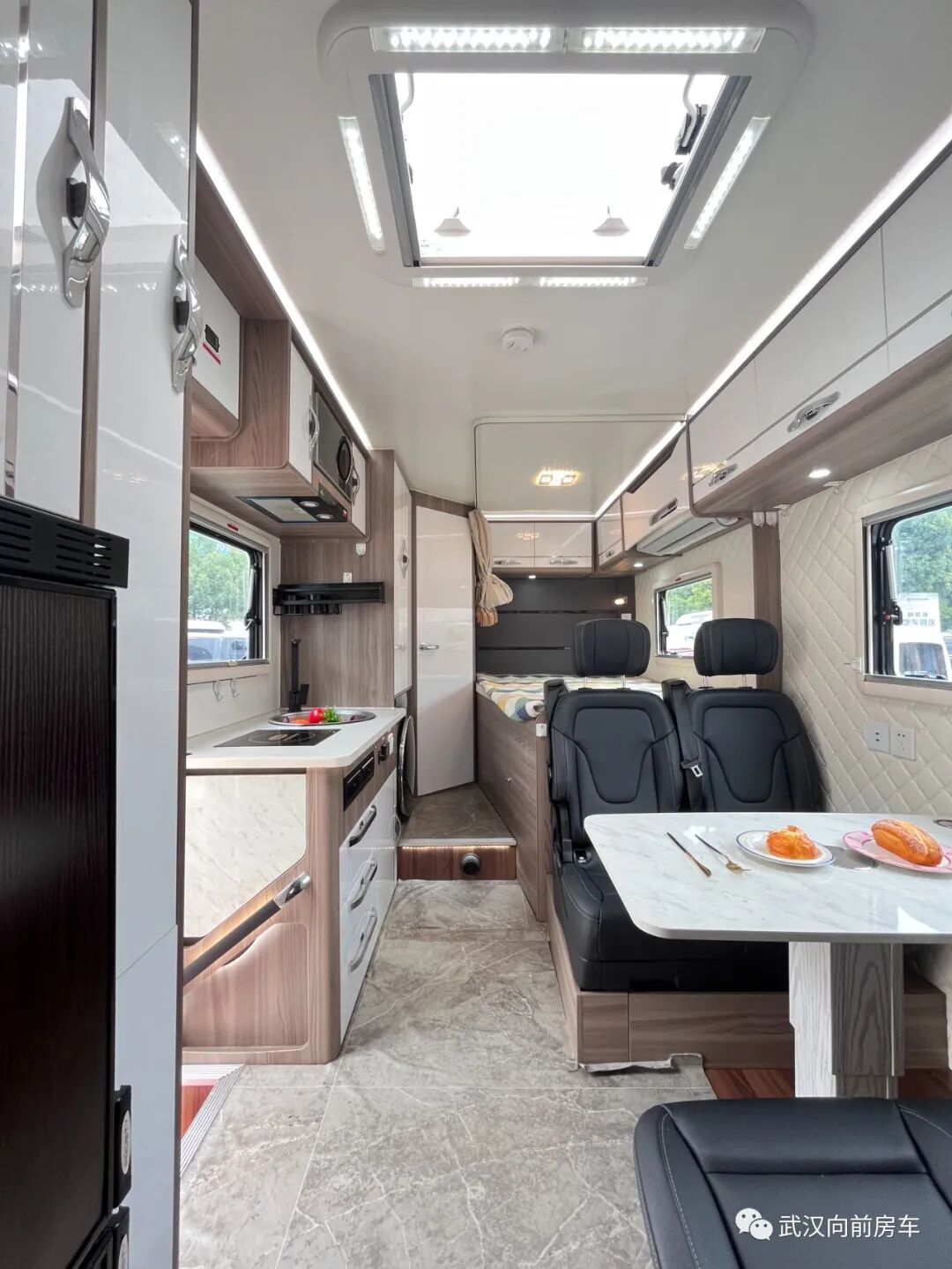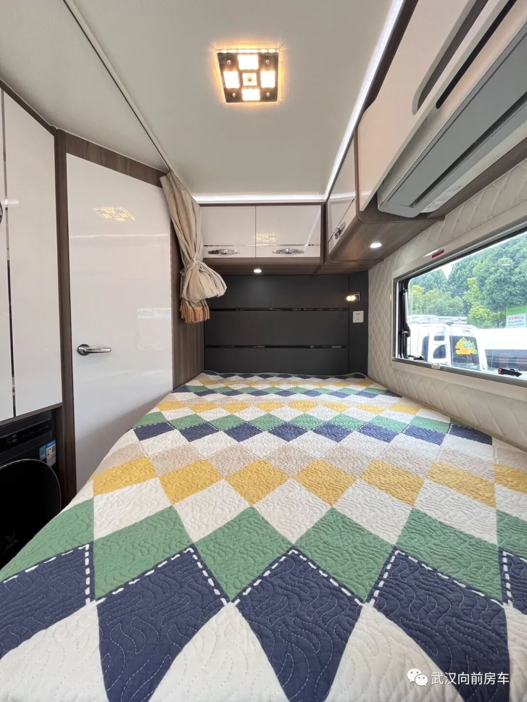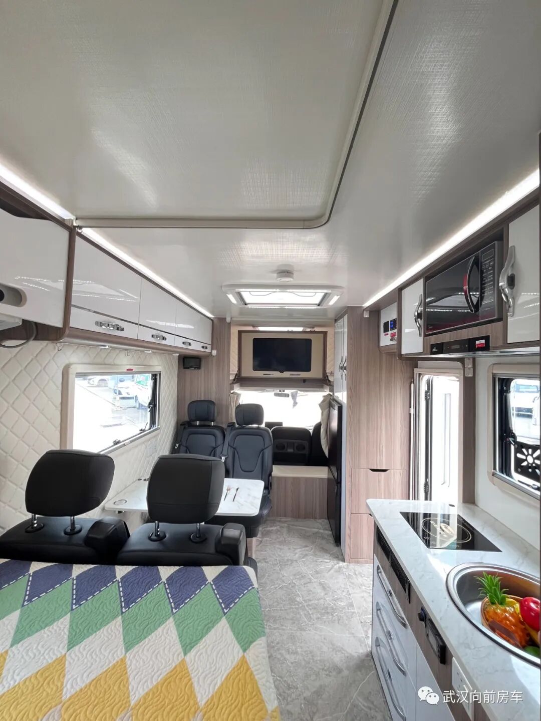 新到一辆22年4月上牌,由上汽跃进H500底盘打造的法美瑞海角7号房车,整车尺寸5990*2305*3180mm,国六排放,核载6人,蓝牌C照可驾驶。搭载2.8T柴油发动机,旋转自动挡,另有一键启动,电子手刹,多功能方向盘,气动座椅,定速巡航,倒车影像,加装氮气减震,四路监控。配备有48V5000W逆变器,48V200AH锂电,800W太阳能,云米家用分体变频智能空调,行车空调后出风口,云米洗烘一体智能滚筒洗衣机,美的微波炉,电磁炉,抽油烟机,柴油暖风,电热水器,小米智能电视,148L双开门冰箱,赛特福德旋转抽拉式马桶,双向换气扇,抽拉式淋浴花洒,户外遮阳棚,抽拉式柴油灶,户外淋浴,后拖车杠等。