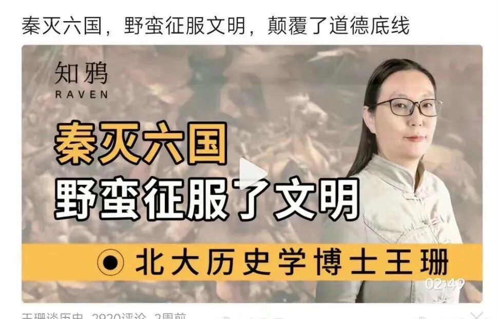 这位北大的王珊博士认为“秦灭六国是野蛮征服了文明”。