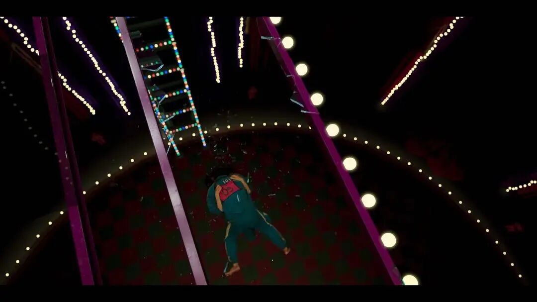 有人为了自己能赢,特意推倒其他人,一场简单的游戏成为了决定生死的战场,看似群体搞笑滑稽的场景,因为死亡而显得凝重,让气氛更加紧张。