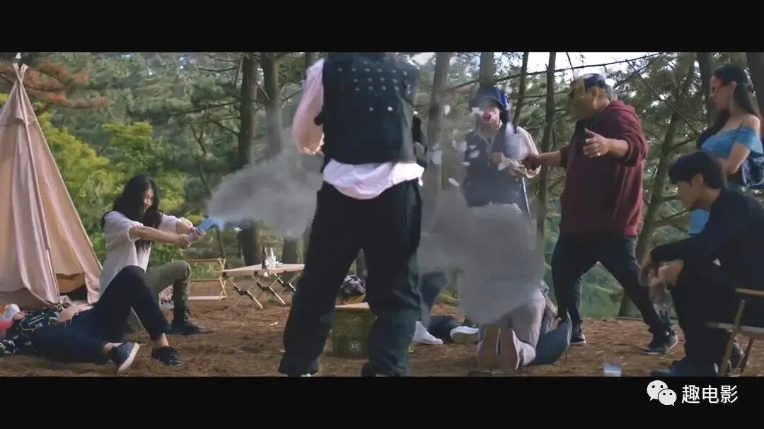 例如女孩在被坏人抓住逃跑时拿出的烟雾弹,很明显像是婚礼上用的礼花弹,还加了个莫名其妙的烟雾特效,看起来尬的一批。