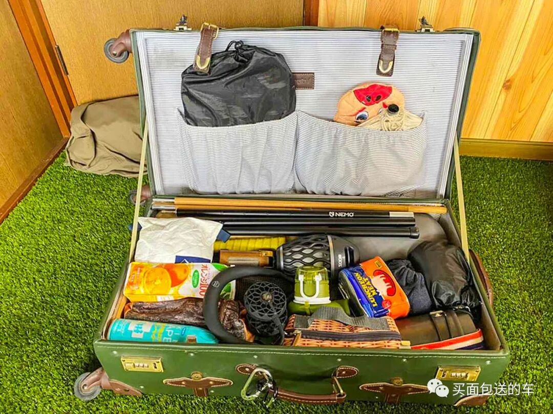 作为户外老炮,麻生太郎所有露营装备都精简在一个手提箱内收纳。
