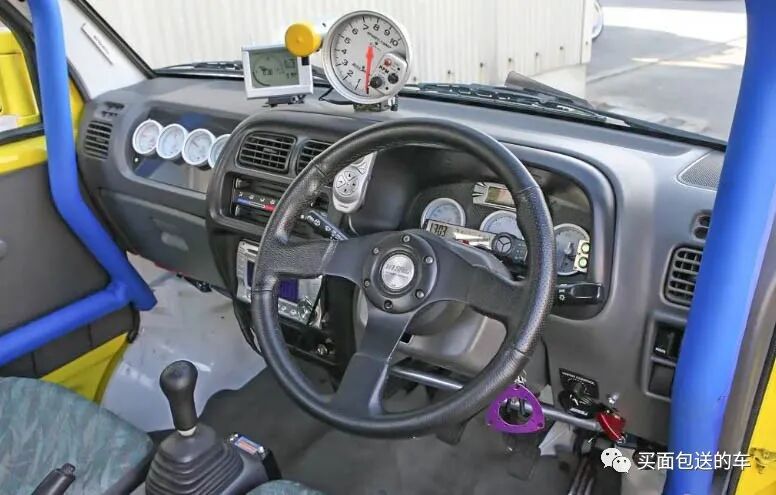 格栅式侧裙和四排气管都还原了法拉利348的特征,这是在十年前完成的外观作品,让feast-power改装工作室的工作车成了网红,在网友的各种玩梗下,feast-power被迫持续对这台SUZUKI CARRY 动大手术。