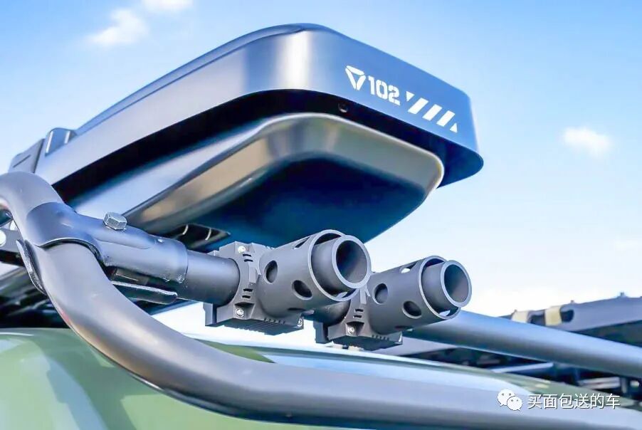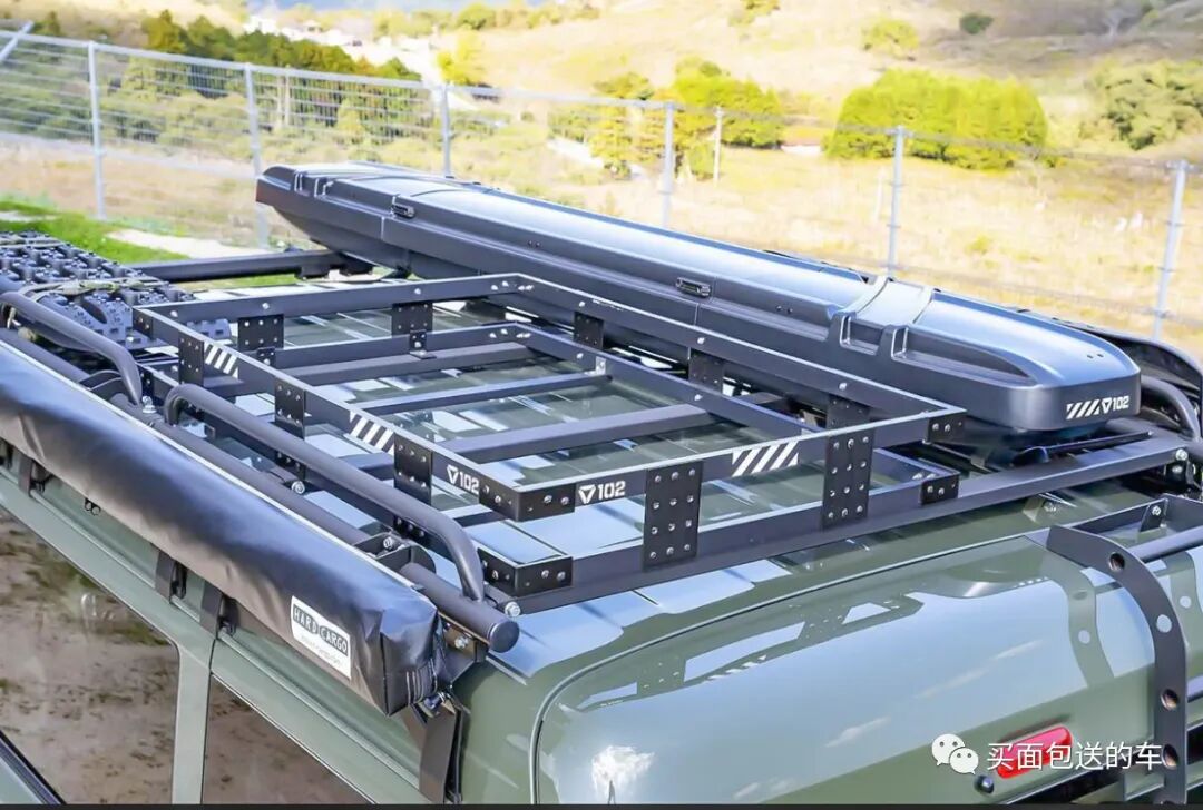 豪太君在车顶上组装好的车顶半框架,鱼竿盒,以及防滑脱困板