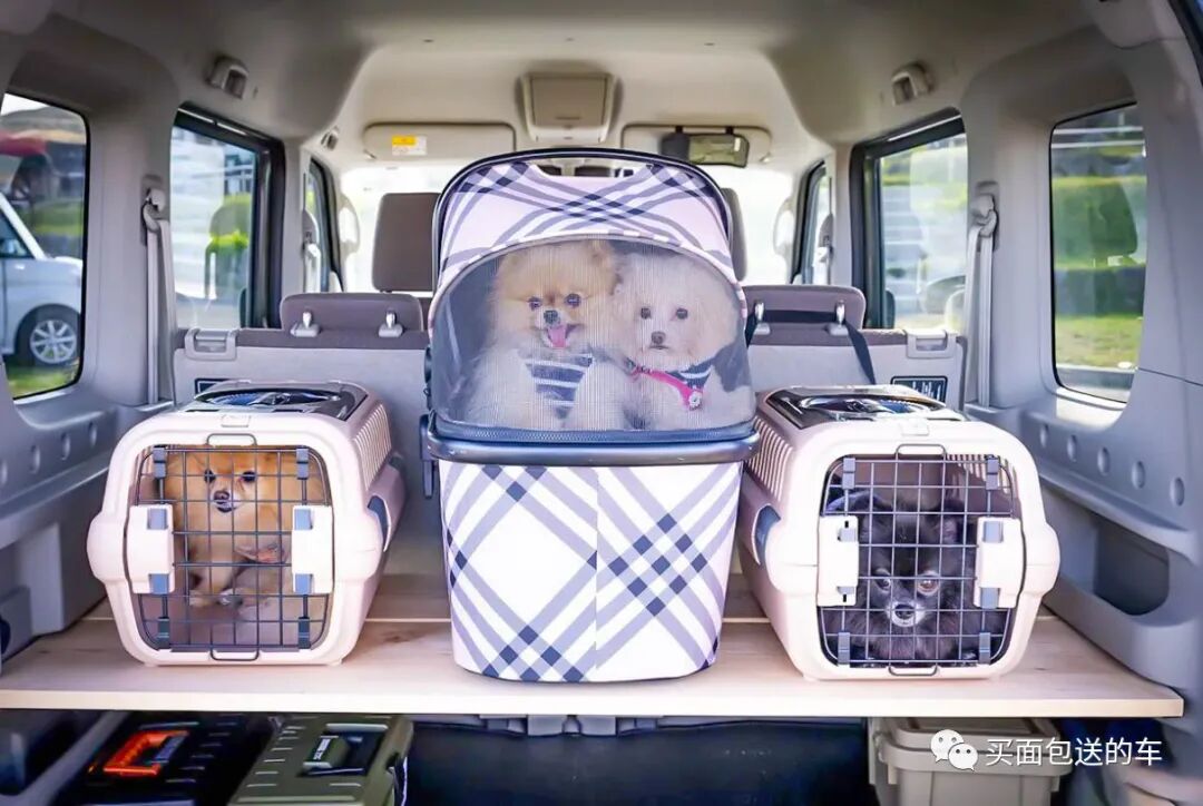 后备箱带了四只爱犬