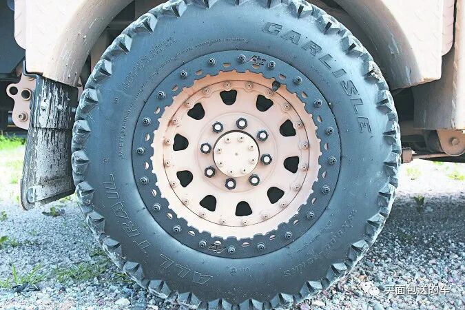 采用AT越野胎的15寸轮毂,用激光切割制作的轮毂内装饰圈。