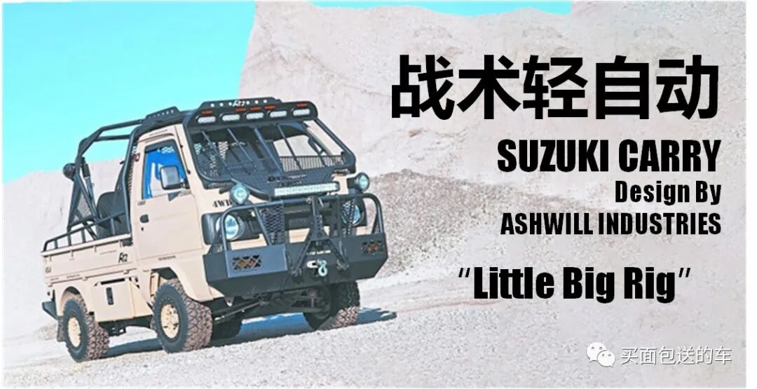 改装作品来自于澳大利亚-AI2(ASHWILL INDUSTRIES) 阿苏亚工业,是一家主营水刀的金属加工厂(用含有石英砂的高压水枪切割金属板材的工艺),老板-托尼.阿苏亚 本人是个资深的狩猎爱好者,在4年前购买了两辆铃木轻卡(底盘代号 DA51T)用于自己加工厂运输物料,突发奇想对这款厂子拉货的小轻卡进行PMC战术风格改装。并取了一个扮猪吃老虎的名字“Little Big Rig”(“小拖车头”)。