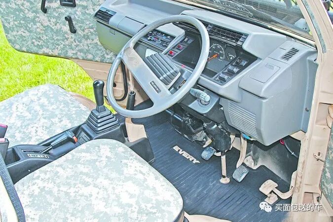 该车型是右舵版本(澳大利亚为右舵驾驶,日规车可以直接出口到澳大利亚),仪表台上添加了车体外探照灯具的照明控制开关,注意中护手位置上的手动四驱分动箱切换手柄,座椅布套用美军ACU数码迷彩做点缀。